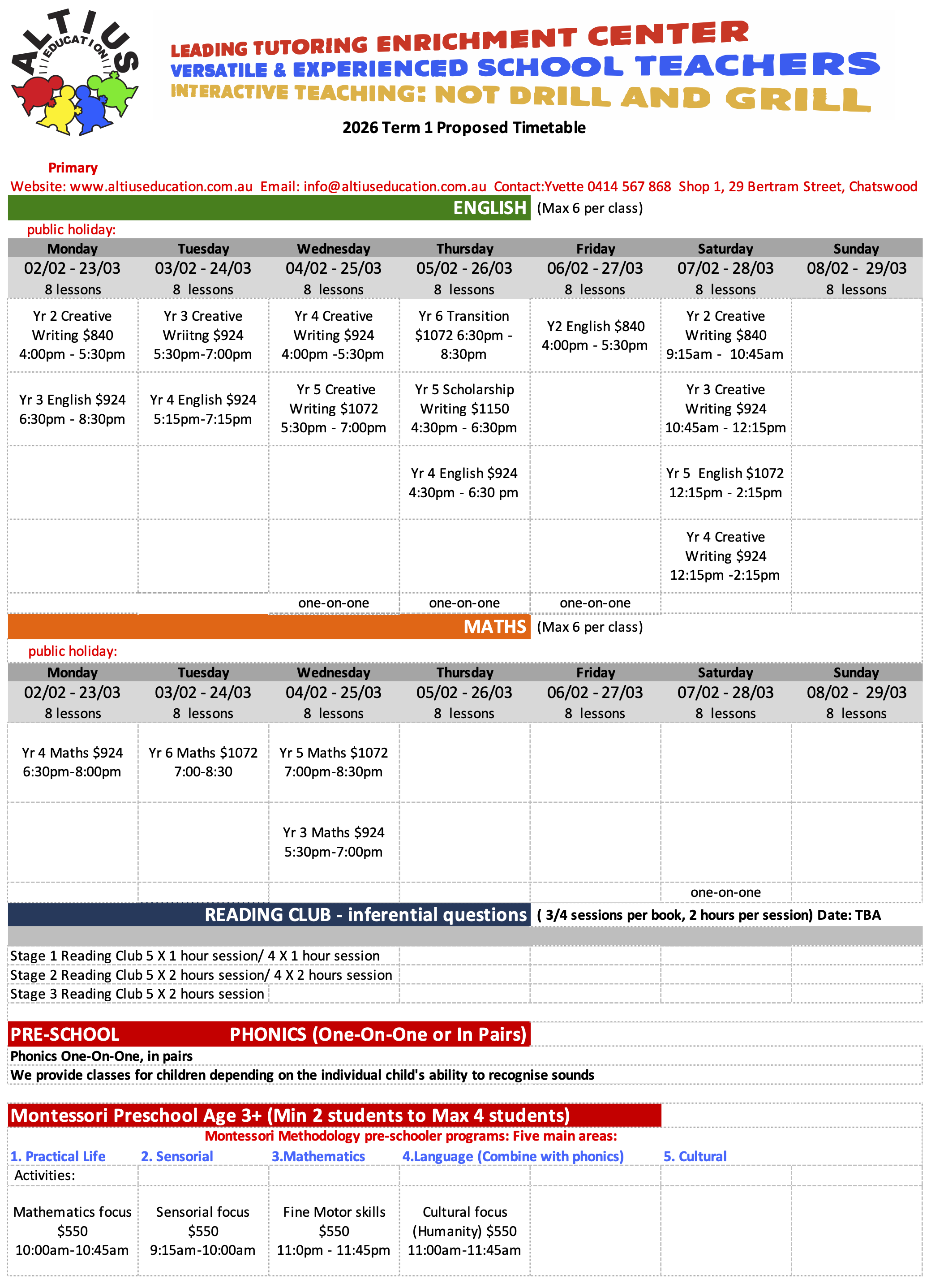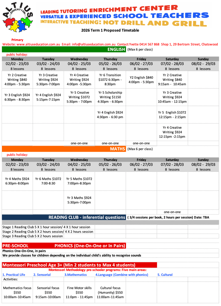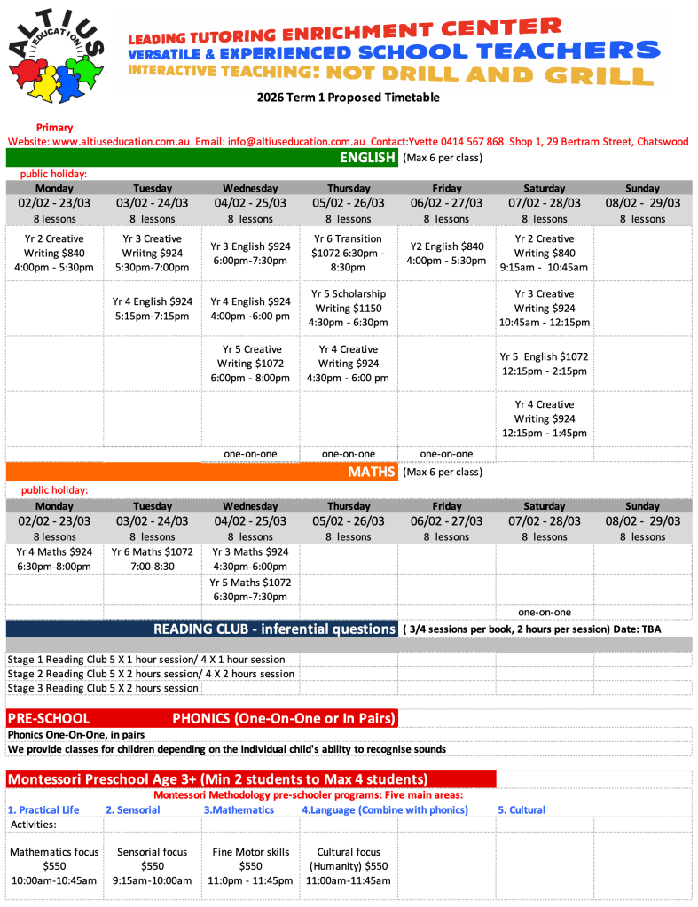 2026 Term 1 Proposed Primary Timetable